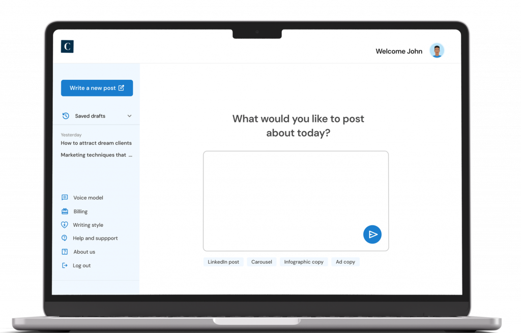 Your writing style, tone, and voice—captured perfectly. Just enter a topic, and we’ll generate posts, articles, and carousels that sound like you.
