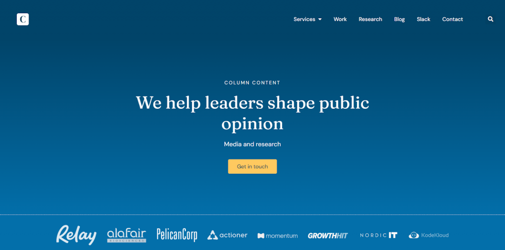Column operates as a genuine thought-partner, not a content factory. Our approach is built on a senior-led team where every client works directly with an expert.
