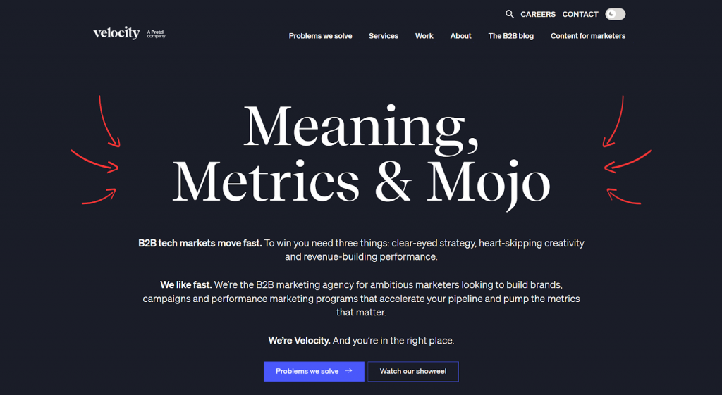 Velocity Partners is a B2B marketing agency focused on helping tech and B2B companies tell complex stories through a combination of strategy, creative work, and performance-driven marketing.