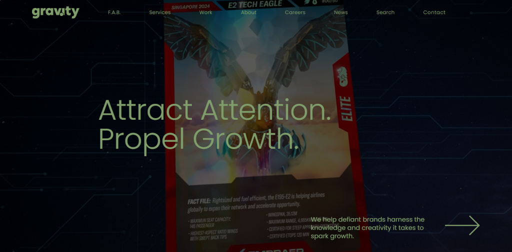 Gravity Global is a global full-service marketing agency that offers brand-to-demand solutions and works across many industries, including aerospace, manufacturing, healthcare, financial services, automotive, and technology.