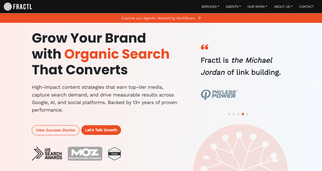 Fractl is a boutique content marketing and digital PR agency that emphasizes data-driven content and research-led campaigns.